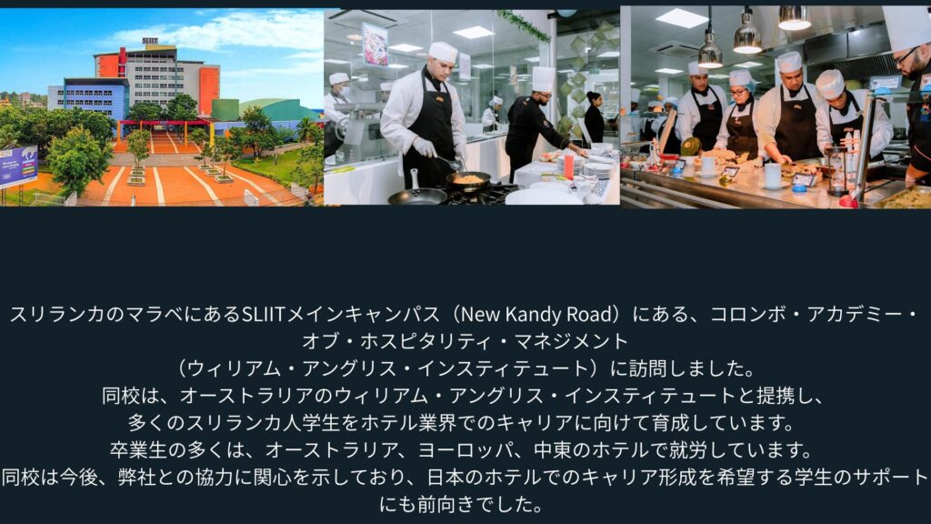 イベントでは、弊社の紹介、日本への留学・就労のルート、日本のマナー、スリランカと日本の歴史についてお話ししました。