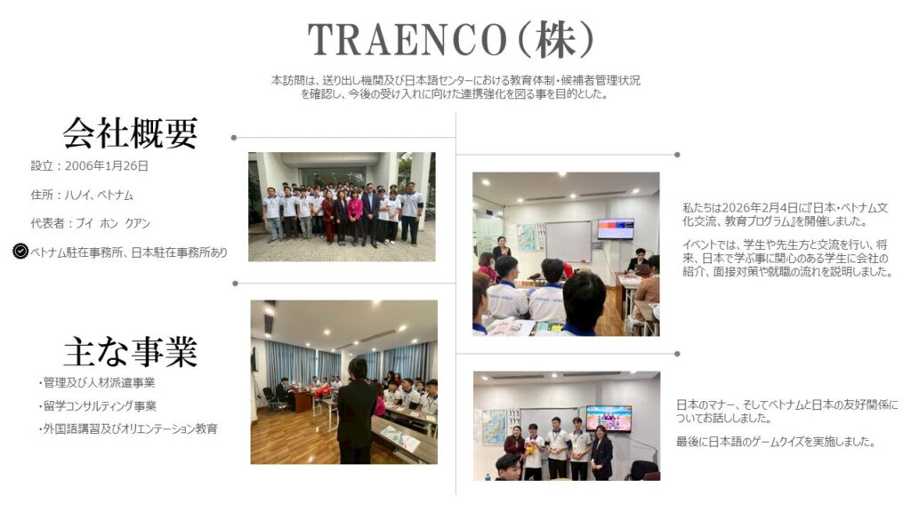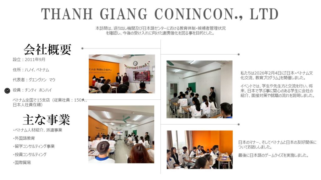 2026年2月、弊社は複数の送り出し機関や学校を訪問し、今後の連携について意見交換を行いました。